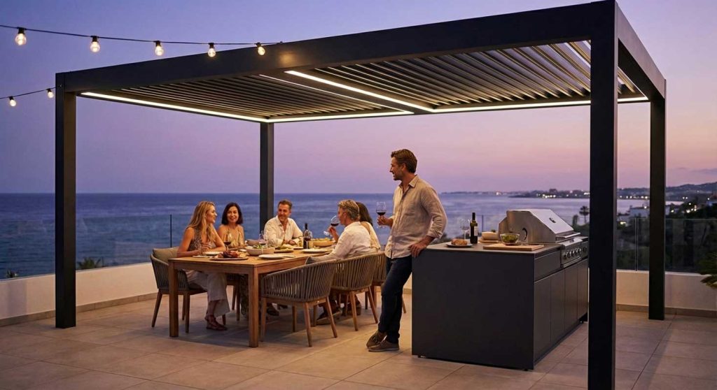 The ‘Mediterranean Dream’ is about seamless entertaining where the chef is the heart of the party, not hidden away. Upgrade your terrace to a fully functioning outdoor room.